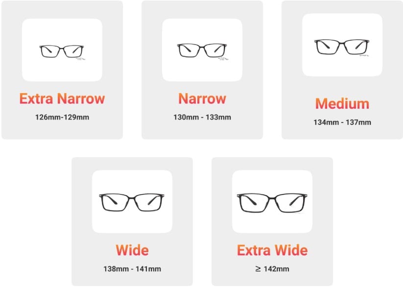 ابحث عن مقاس إطارك عن طريق مطابقة عرض وجهك مع المقاسات التالية
